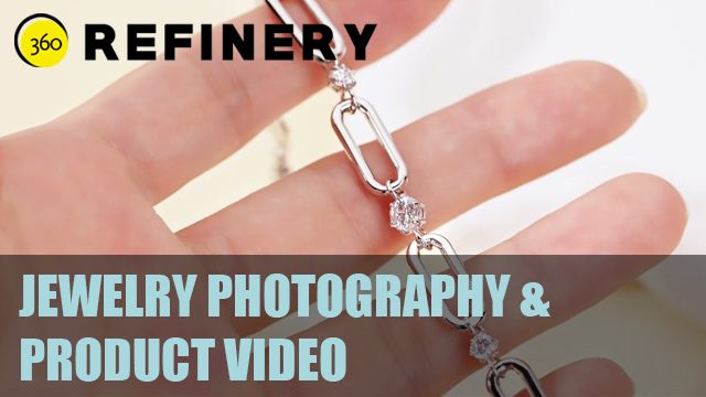 Our jewelry photography services can be used for most types of budget jewelry. We do not generally perform photo shoots for jewelry containing real diamonds and other high end items that require security personnel to come on set for the duration of the photo shoot. You can use our service for rings product photography, necklace product photography, bracelets product photography, wedding bands product photography and more. 360Refinery can also create jewelry videos for ecommerce.